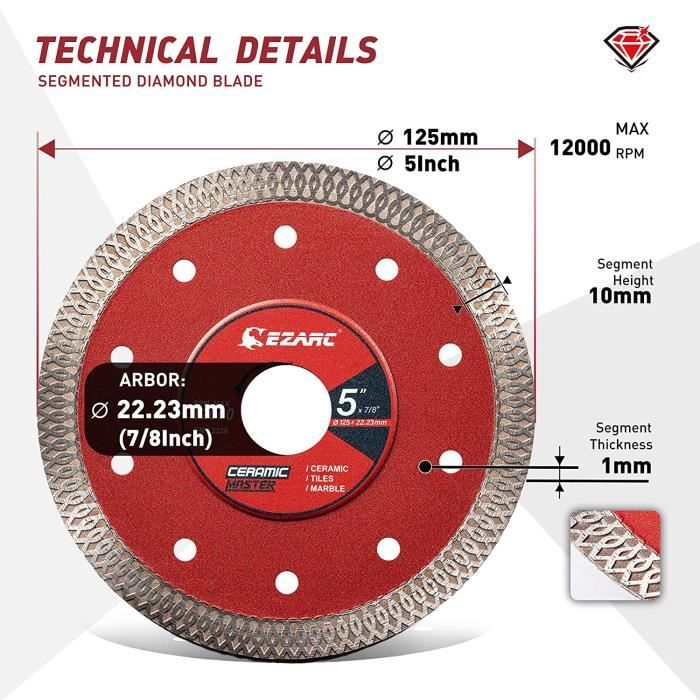WORKPRO Disque Meuleuse WORKPRO Lot De 2 Disques Diamant 125 Mm - Pour Coupe Carrelage, Béton, Pierre, Granit - Compatible Meuleuse D'angle Disque Diamant 125mm