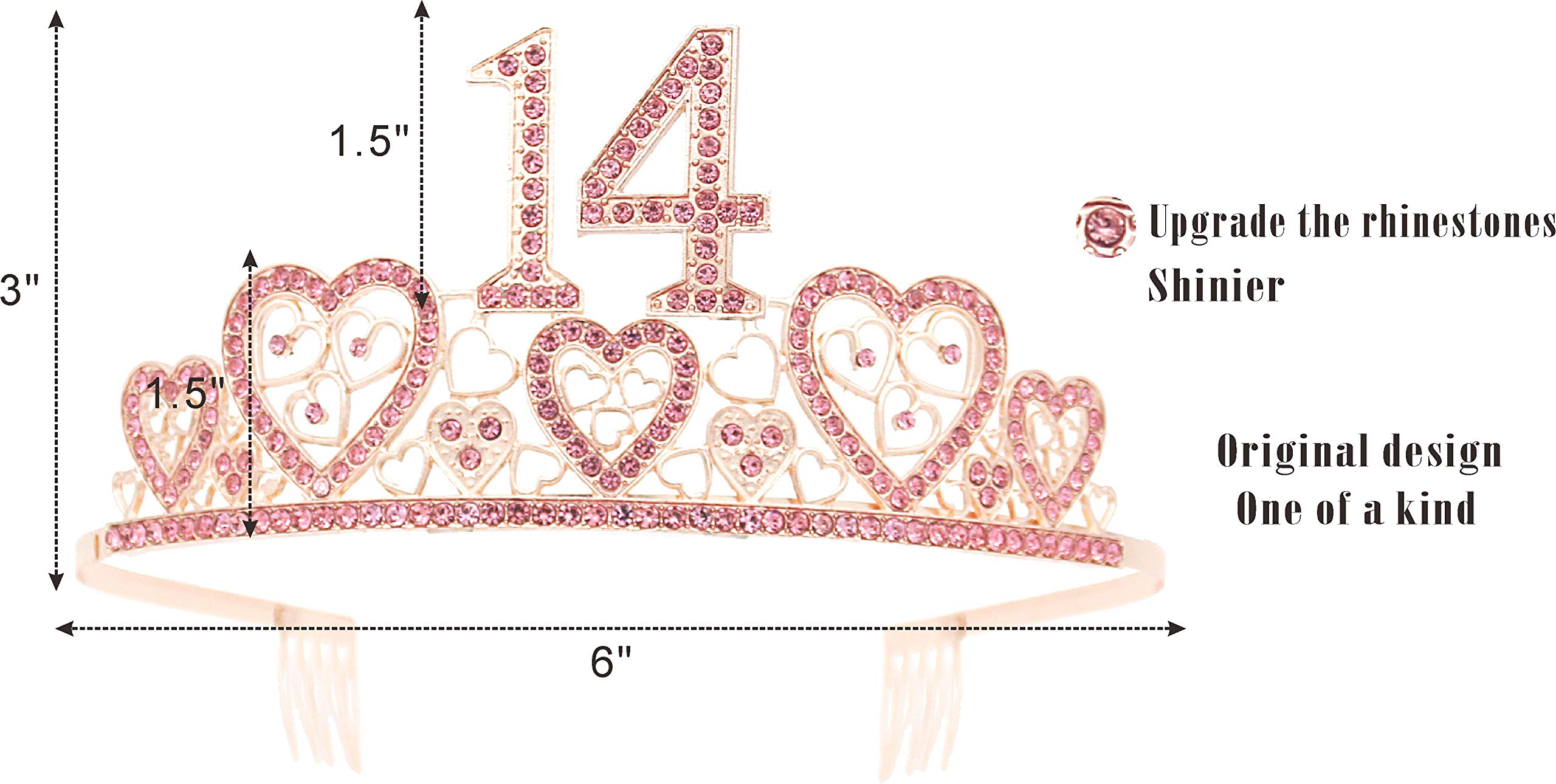 Set Couronne Et écharpe "14 Ans" Or Rose - Diadème Strass Et écharpe Pailletée Pour Fête D'anniversaire