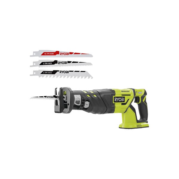 Pack RYOBI Scie Sabre RRS1801M 18V + 6 Lames - Sans Batterie Ni Chargeur - Variateur De Vitesse, Anti-vibration, Changement De Lame Sans Outil