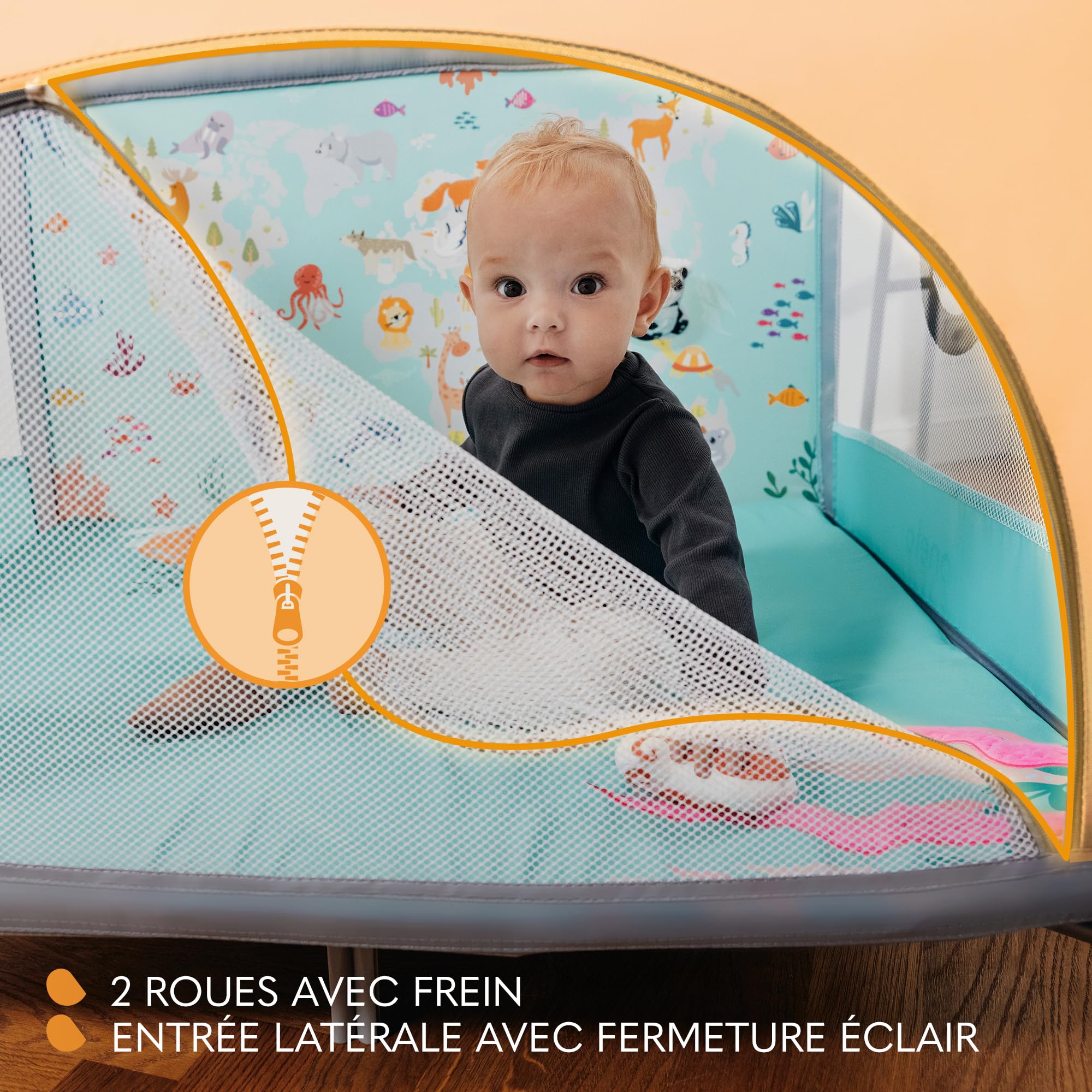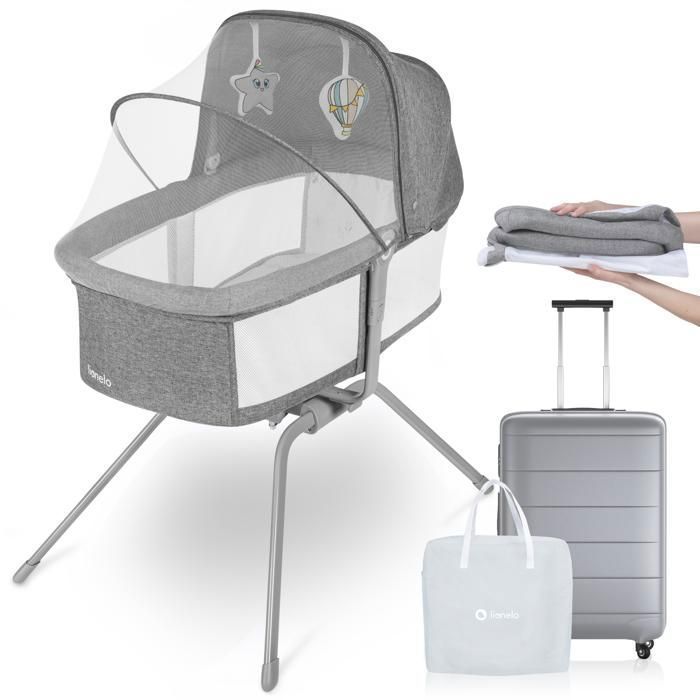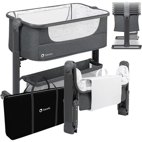 Salut les jeunes parents ! Vous cherchez un lit bébé pratique, modulable et facile à transporter ? Le lit Lionelo Theo est un vrai 3 en 1 : il peut servir de lit classique autonome, de lit d’appoint pour co-dodo (grâce à sa paroi latérale pliable) et de lit de voyage quand vous partez en week-end ou chez les grands-parents.\n\nIl convient dès la naissance et jusqu’à 9 kg. Le matelas est doux et confortable (87 x 50 x 4 cm), avec une housse lavable en machine. Vous pouvez régler la hauteur en 5 positions et incliner le fond pour soulager les reflux de bébé.\n\nLes côtés sont en mesh respirant pour une bonne circulation d’air, et il est livré avec une moustiquaire pour protéger des insectes, une poche de rangement pour les petits affaires, et même un sac de transport avec poignée. Il a aussi 2 roulettes avec freins pour le déplacer facilement dans la maison.\n\nMontage simple, sécurité optimale avec des sangles de fixation solides, et un design moderne qui s’intègre partout. Bref, un lit malin qui grandit avec bébé et qui vous facilite la vie au quotidien !