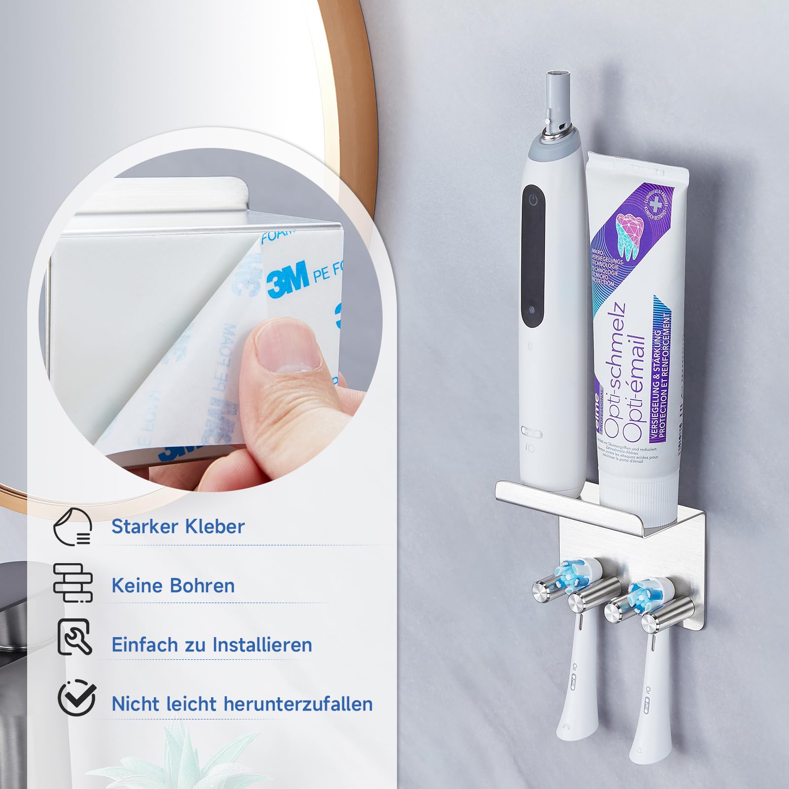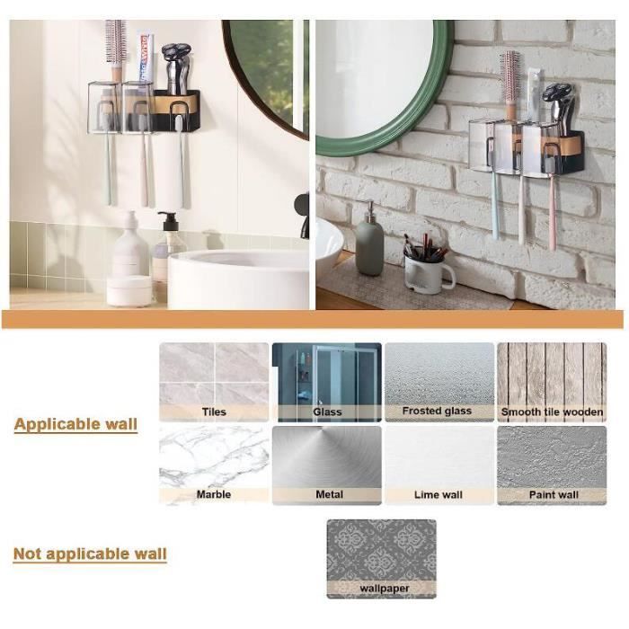 Support Brosse A Dent Electrique Porte-brosse à Dents Mural En Acier Inoxydable 304 - Avec Support Dentifrice Et Rasoir - Adhésif 3M Inclus Porte Brosse électrique Auto-adhésif