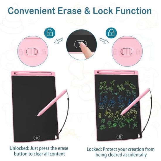 Tablette Dessin LCD Pour Enfants 8,5 Pouces - Lot De 2, Ardoise Magique Avec Bouton Verrouillage, Cadeau 3-6 Ans
