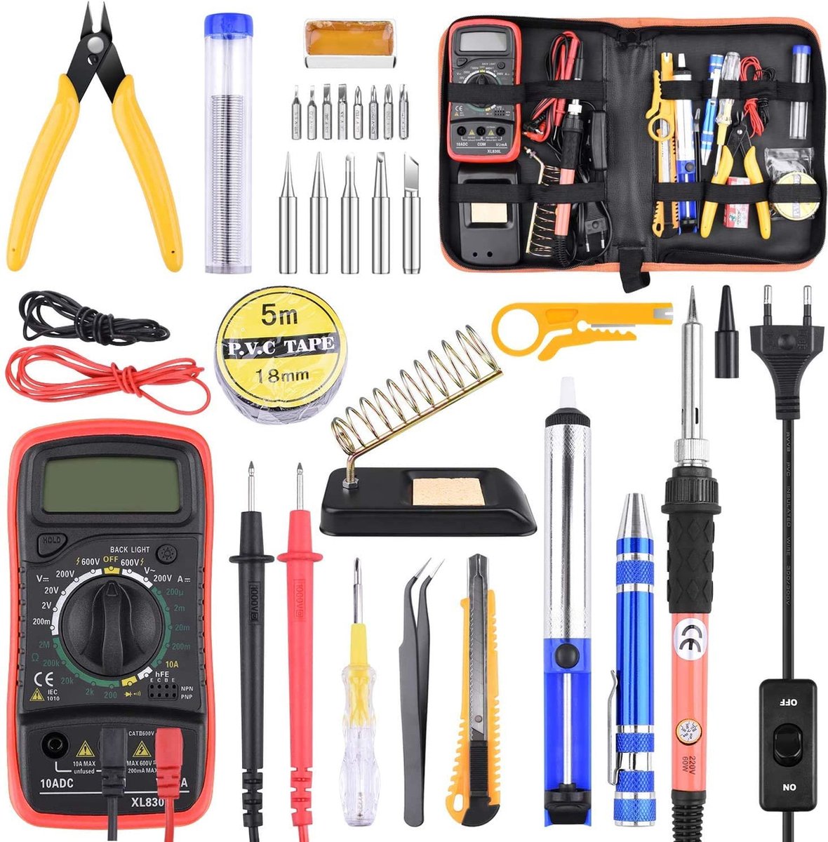 Kit Fer à Souder électronique 60W 220V - Température Réglable 200-450°C, Avec Pompe à Dessouder, Pinces, étui