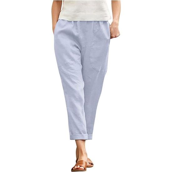 Pantalon Lin Femme Outlet Pantalon Femme En Lin Léger - Coupe Loose 7/8 - Taille Haute Avec Cordon - Idéal été, Vacances, Plage Pantalon Lin Femme été
