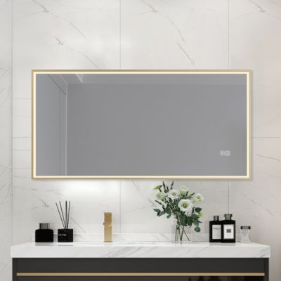Miroir De Salle De Bains Lumineux LED 90x60cm - Cadre Or Brossé, 3 Couleurs, Antibuée, Interrupteur Tactile