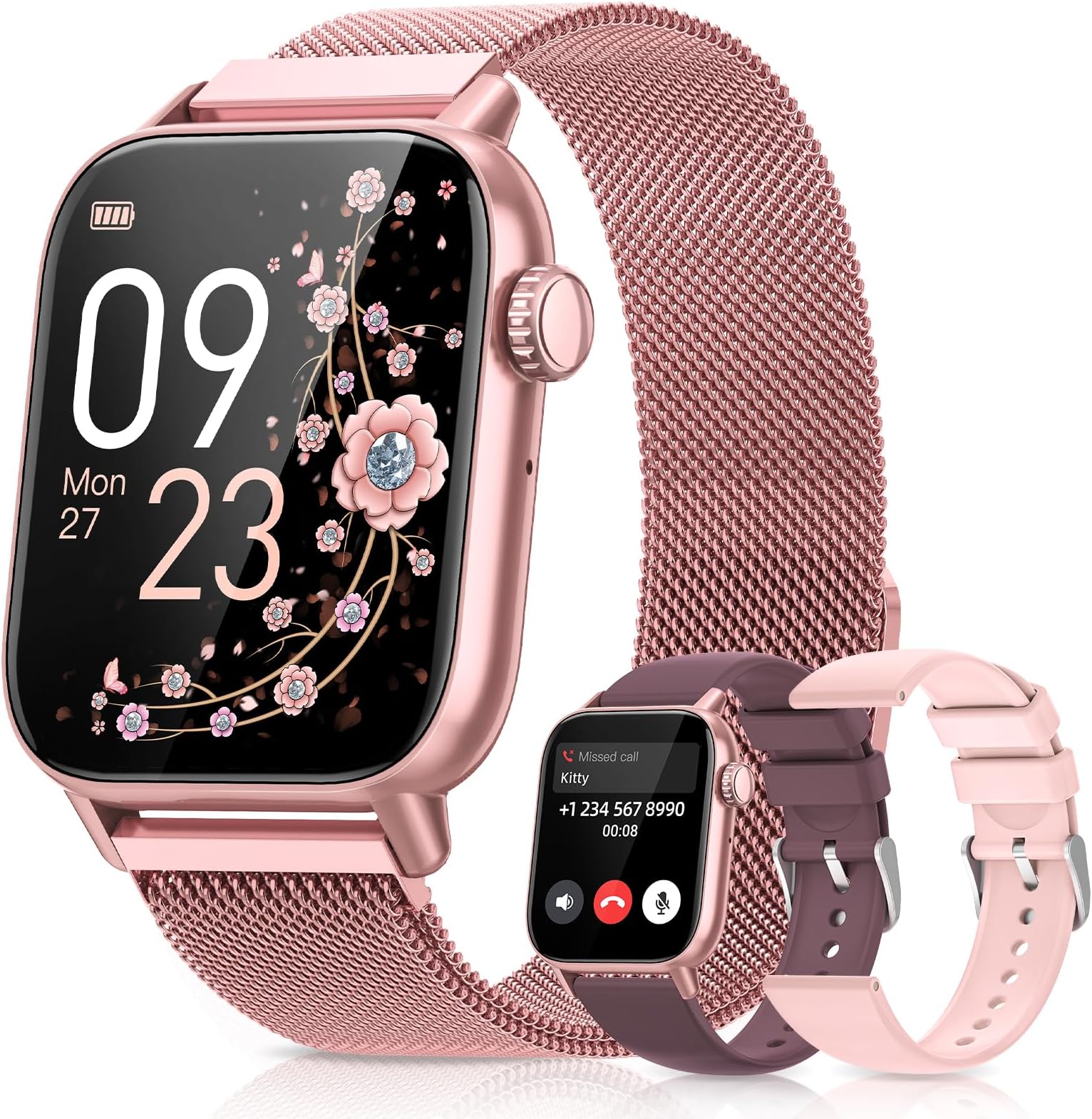 Montre Femme Montre Connectée Femme SIEMORL - Appels Bluetooth, Écran 1.57" - Suivi Santé SpO2, Rythme Cardiaque, Sommeil - 21 Sports - Étanche IP68 Ice Watch Femme