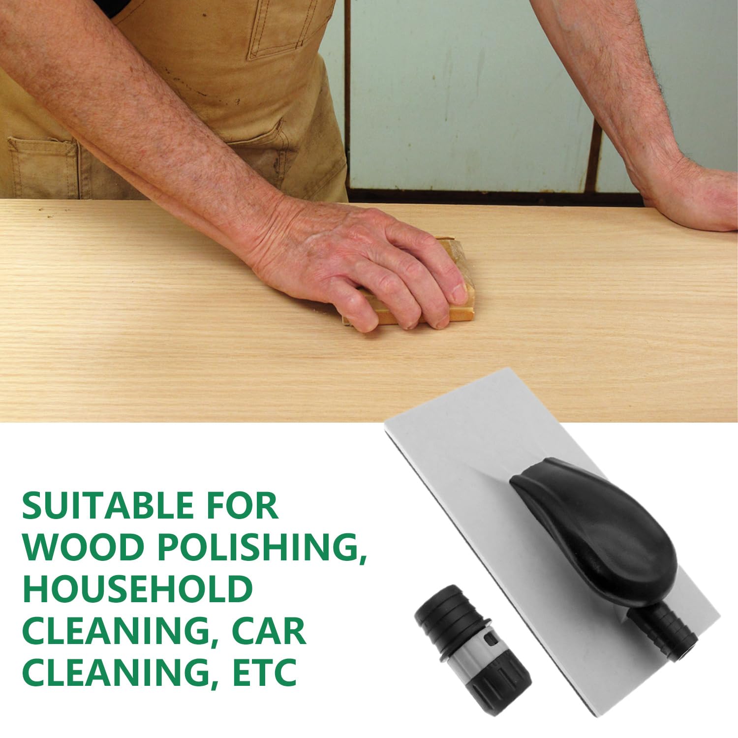 Pour poncer sans te couvrir de poussière, cette ponceuse manuelle avec aspiration est top ! Elle a deux ports de 28 mm de diamètre pour brancher un tuyau d'aspirateur ou un système d'extraction – ainsi, la poussière est captée directement. Dimensions : 228 mm de long, 114 mm de large, facile à tenir. En ABS et nylon, robuste et léger (435 g). Le lot comprend 5 feuilles de papier de verre interchangeables avec grains 80, 120, 180, 240 et 320, pour du dégrossissage à la finition. Parfaite pour le bricolage sur bois, les murs, les peintures, ou même le nettoyage de surfaces. Les feuilles se clipsent facilement. Un outil pratique pour les petits travaux de rénovation, de modelisme ou d'entretien auto. Pense à bien ventiler et porter un masque malgré l'aspiration pour les travaux intensifs.
