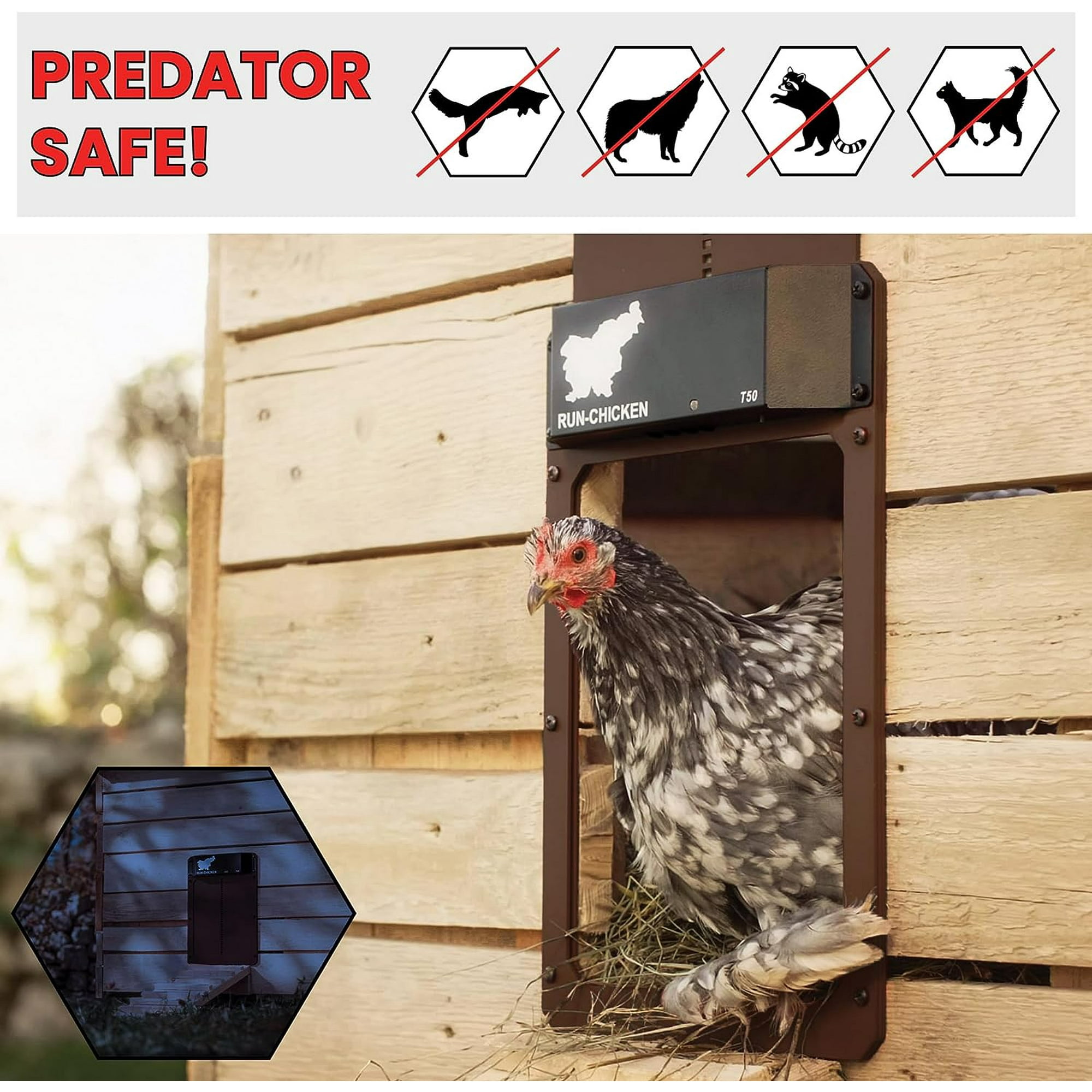 Porte Automatique De Poulailler Avec Minuterie - Alimentation Batterie Ou Secteur - Taille 28,5x20,5 Cm En Aluminium