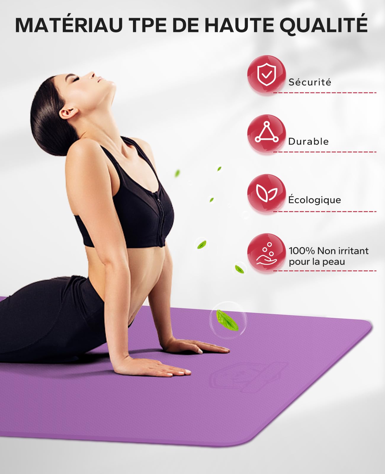 Tu en as marre des tapis de yoga trop petits qui glissent ? Ce tapis extra-large (198 x 137 cm) te donne tout l’espace nécessaire pour tes postures, même les plus amples. En matériau TPE écologique, il est doux, léger, recyclable et sans odeur désagréable. L’épaisseur de 6 mm offre un bon amorti pour les genoux, les coudes et la colonne vertébrale, tout en restant stable. La surface est antidérapante des deux côtés, avec un motif ondulé en dessous pour une accroche parfaite sur le sol (pas sur moquette). Il est livré avec un sac de rangement et deux sangles Velcro pour le transporter facilement au studio ou en extérieur. Lavable à l’eau, il garde sa fraîcheur longtemps. Parfait pour le yoga, le Pilates, les étirements, la méditation, ou même les exercices au sol à la maison. Un investissement confort et qualité pour ta pratique, que tu sois débutant ou confirmé. Profite de plus d’espace et de stabilité pour te concentrer sur l’essentiel : ton bien-être.