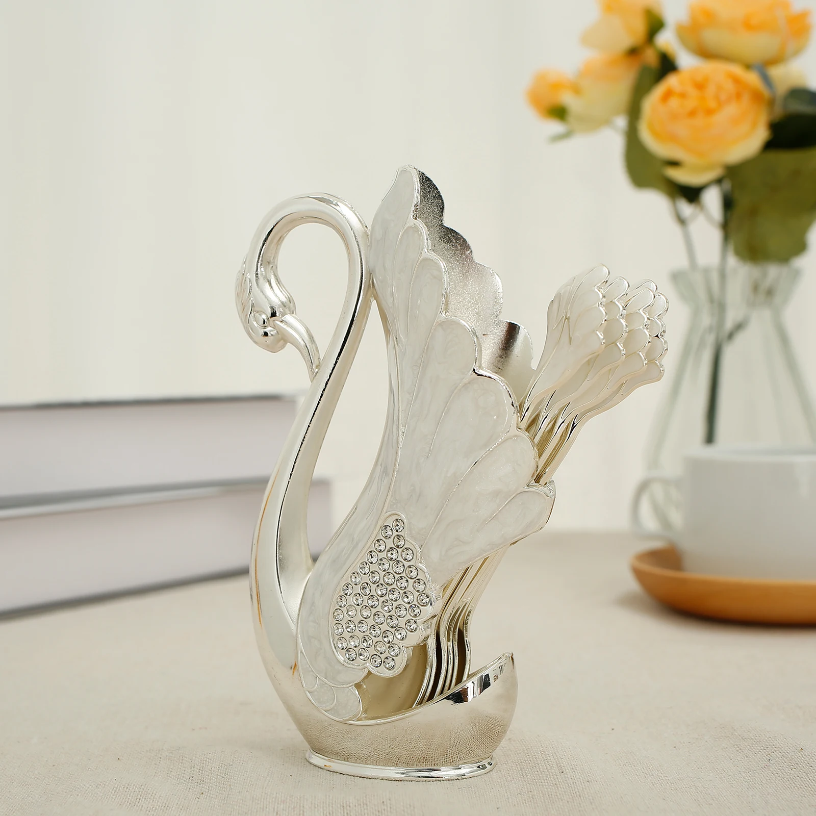 Support De Rangement Pour Cuillères En Forme De Cygne - 6 Cuillères En Alliage De Zinc Doré - Décoration De Table