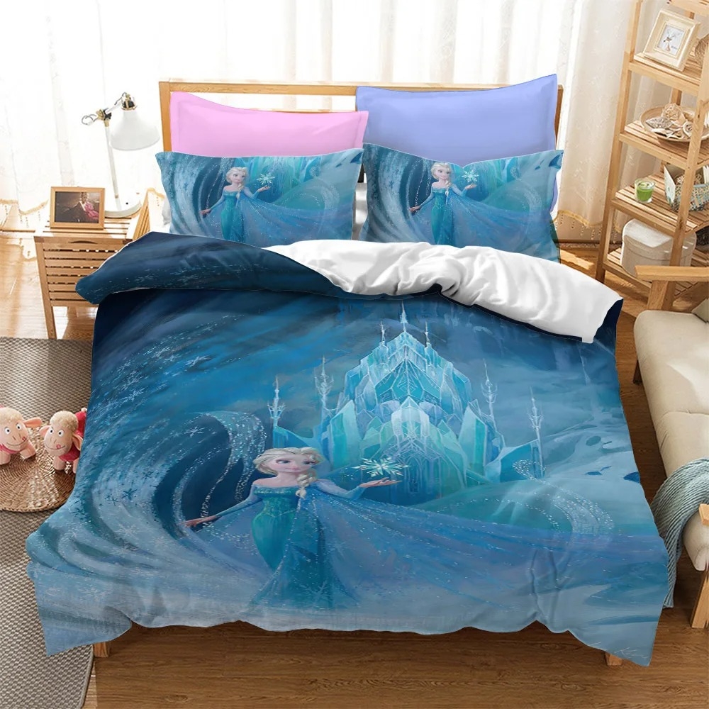 Housse De Couette Frozen 140x200 Cm Coton Oeko-Tex Parure De Lit Reine Des Neiges - Housse De Couette 140x200 Cm + Taie 65x65 Cm, 100% Coton, Réversible Literie Enfant Disney Coton