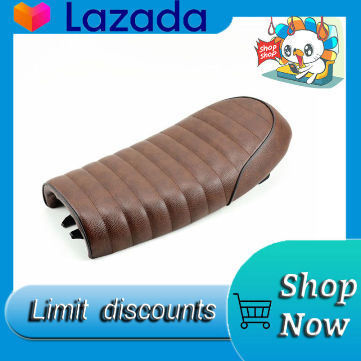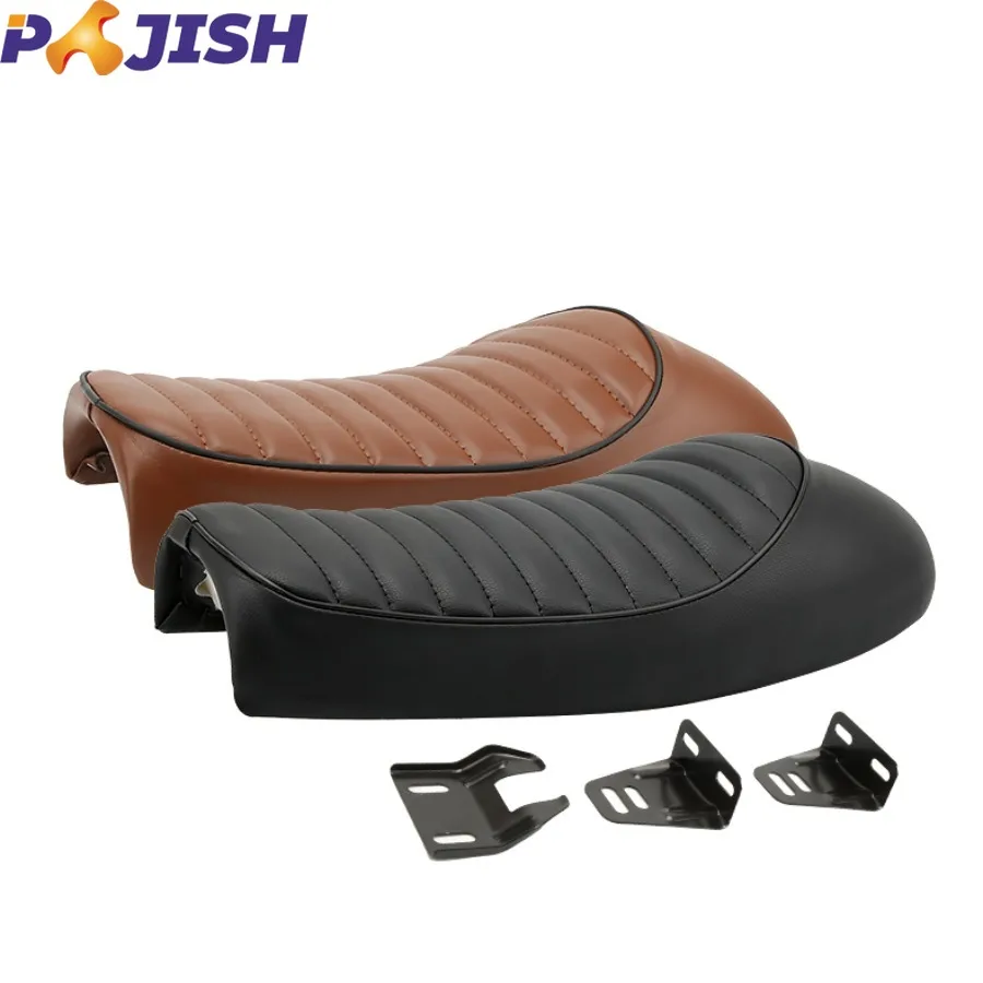Selle Moto Cafe Racer En Cuir PU Vintage - Pour CG125, GN, CB400SS, Etc. - Type B Noir - Avec Boucle Et Supports