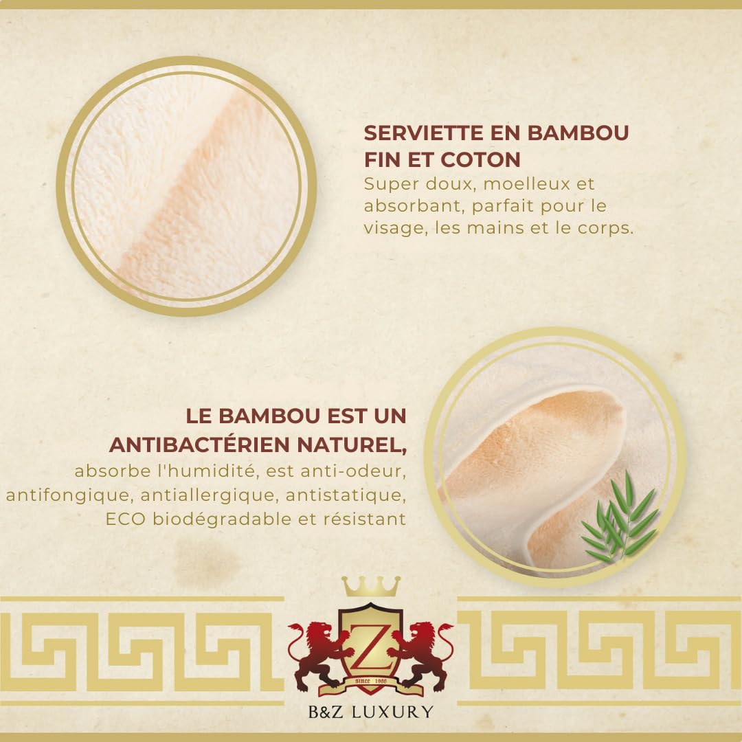 Le bambou, c’est naturellement antibactérien, donc la serviette reste fraîche plus longtemps, sans odeurs. Parfait pour les peaux sensibles, les bébés, ou ceux qui ont des allergies. Et côté planète, c’est top : le bambou pousse vite, sans pesticides.