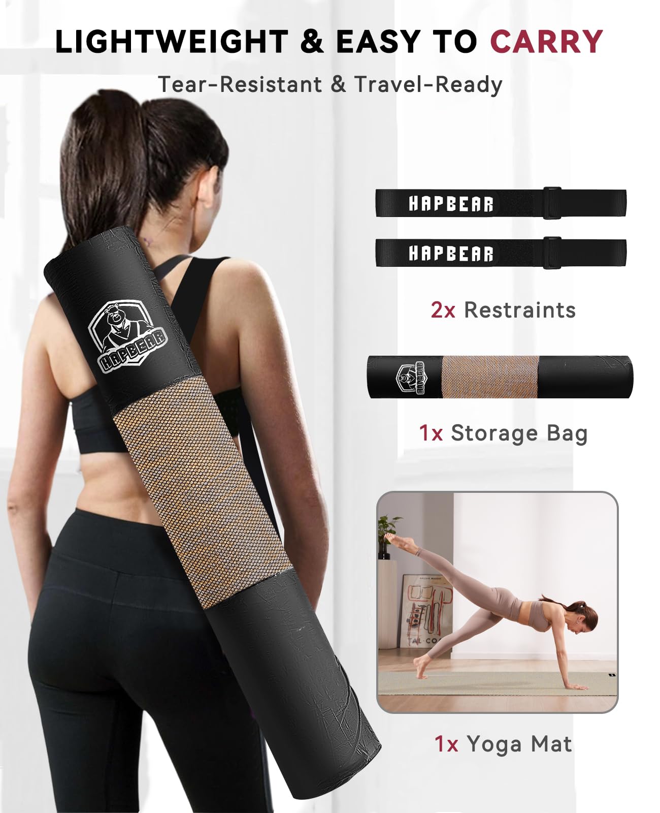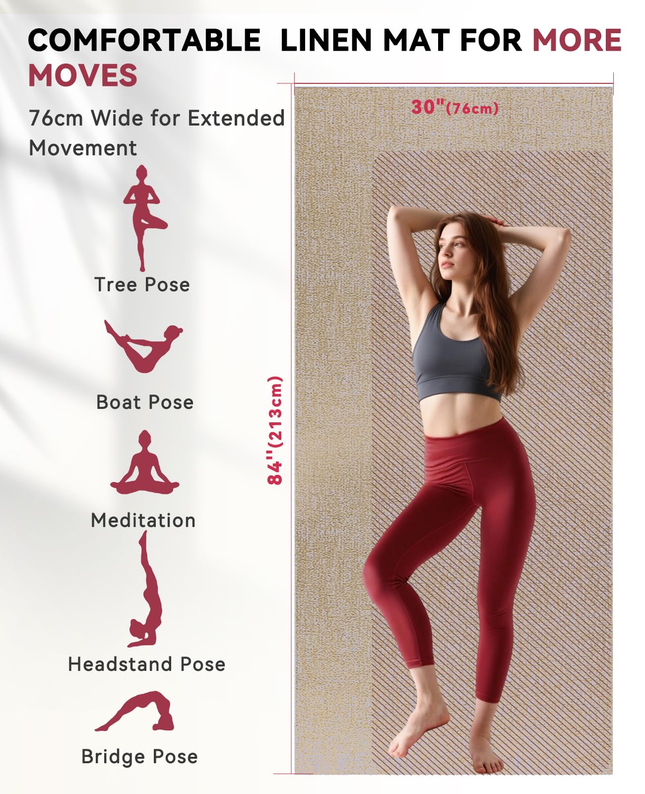 HAPBEAR - Tapis De Yoga En Lin Et PVC - 213x76 Cm, 6 Mm D'épaisseur - Double Face Antidérapante - Pour Yoga, Pilates, Fitness