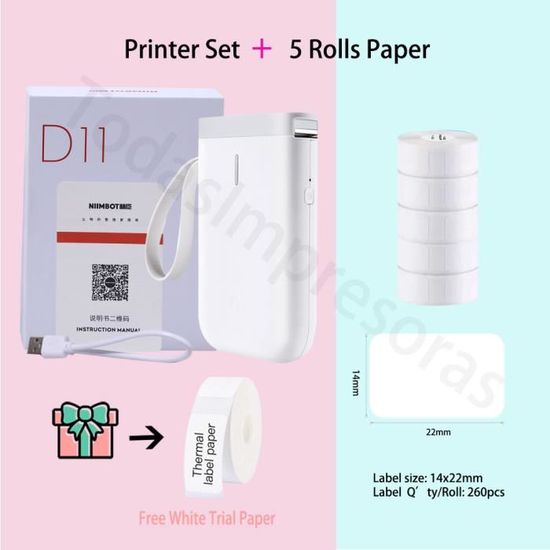 Organisez tout avec l'imprimante d'étiquettes Bluetooth Etlephe D110 ! Portable, légère, sans encre – elle imprime en thermique, rapidement et clairement. Connectez-vous via l'appli gratuite \NIIMBOT\ (iOS/Android) et créez des étiquettes personnalisées : texte, logos, codes QR, cadres… + de 600 modèles, 19 polices, 1500 icônes incluses. Reconnaissance automatique du ruban (supporte blanc, couleur, transparent). Parfait pour ranger à la maison (cosmétiques, épices, dossiers), au bureau, ou pour étiqueter des produits. Livrée avec 1 rouleau d'étiquette blanc (15x30 mm) et un câble de recharge. Pas compatible avec ordinateurs/tablettes, seulement smartphones. Une petite merveille pour les maniaques de l'ordre ou les petites boutiques. Fini le fouillis, bonjour l'organisation !
