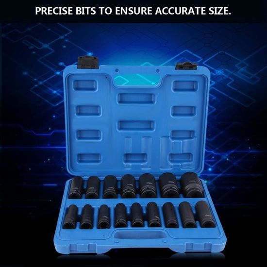 Jeu De 16 Douilles Longues 1/2 Pouce - Chrome-Molybdène, Tailles 10 à 32 Mm - Pour Visseuse à Choc Et Outils Pneumatiques