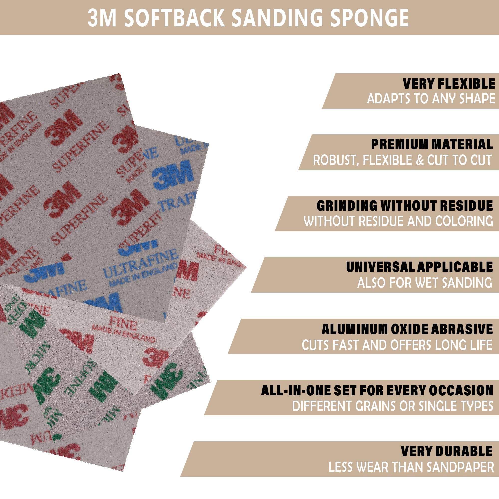 Tampons Abrasifs Mousse Souple Lot De 5 Tampons De Ponçage 3M Soft Pads - Éponges Abrasives Lavables, Grains Moyen à Microfin, Pour Contours Papier Poncer
