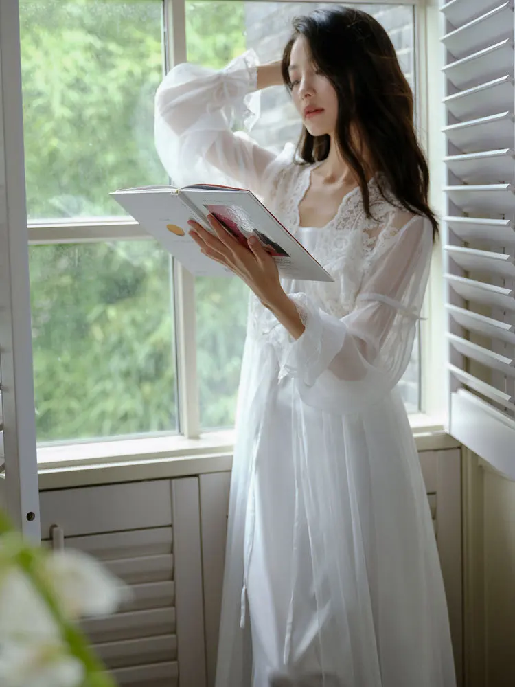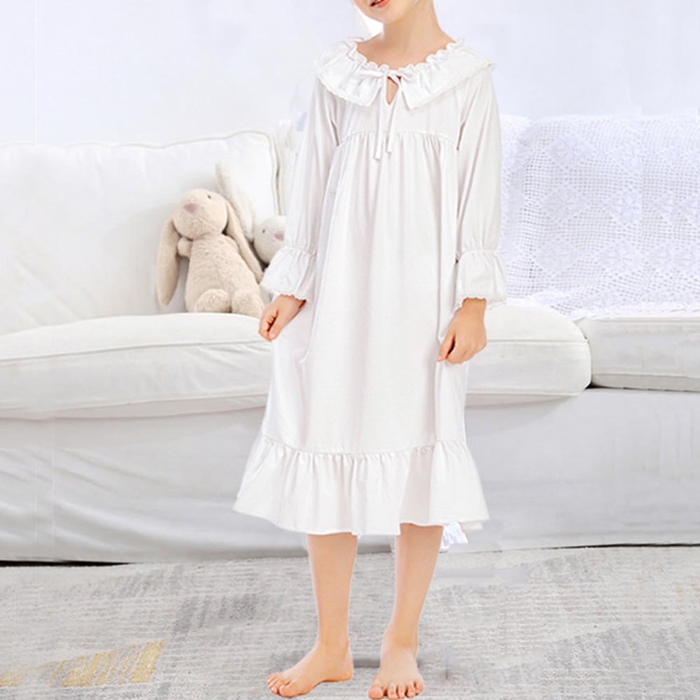 Chemise De Nuit En Coton Pour Fille - Manches Longues, Ourlet Volanté, Style Princesse - Taille 3 à 12 Ans