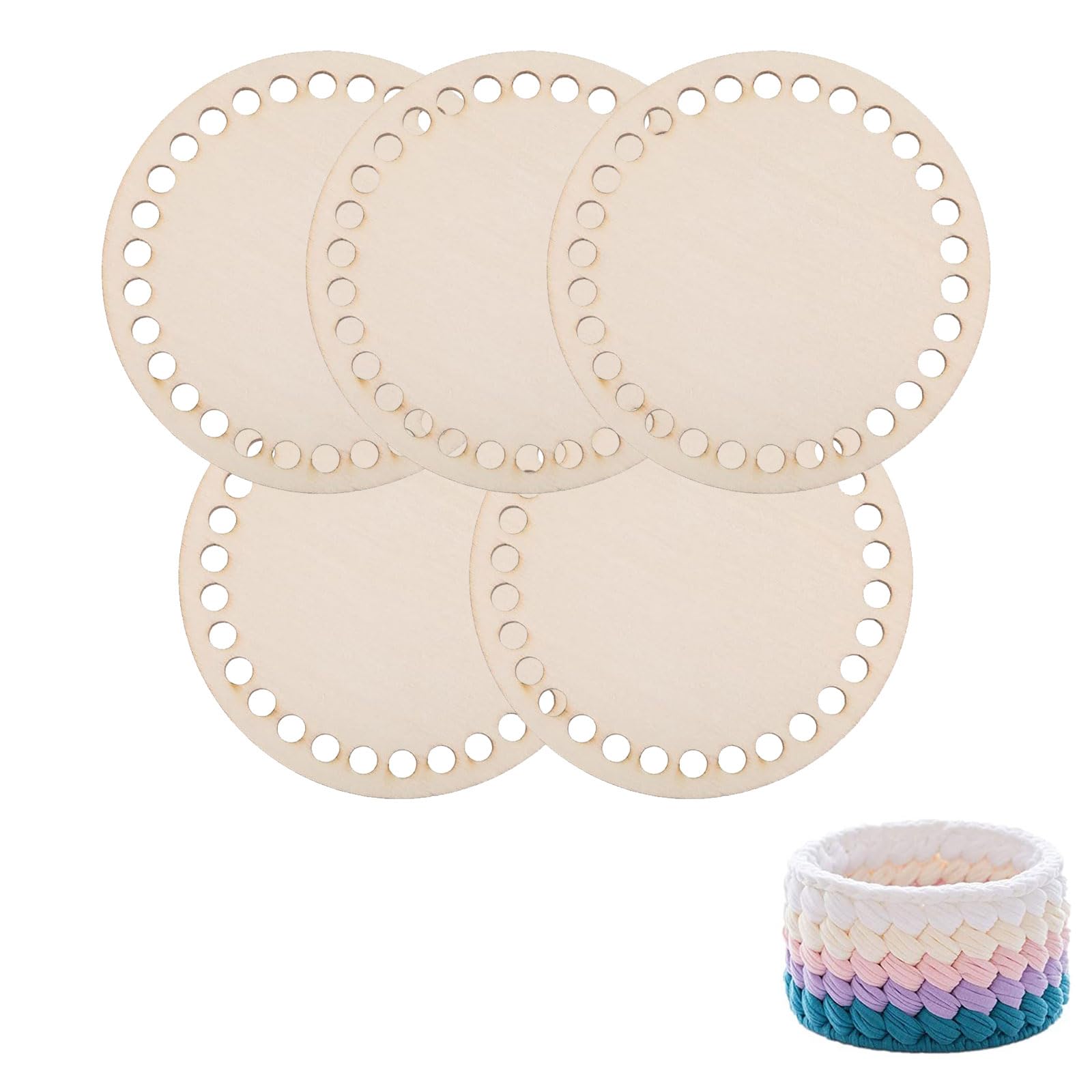 Salut les créatifs ! Si vous adorez le crochet ou le tissage de paniers, ces 5 fonds de panier en bois vont devenir vos meilleurs alliés. En bois de tilleul naturel, solides et sans échardes, ils mesurent 10 cm de diamètre (environ 4 pouces) et font 0,25 cm d'épaisseur. Les trous pré-percés facilitent le passage du crochet ou de la corde – même les débutants les adorent !