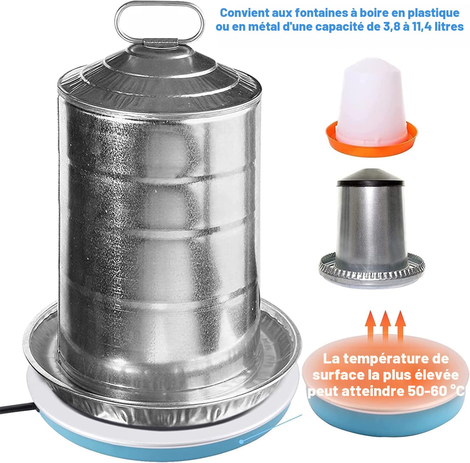 L'hiver, l'eau de tes poules, canards ou autres volailles gèle et elles ne peuvent plus boire ? Cette plaque chauffante est la solution ! Tu la poses sous ton abreuvoir (elle fait 34 cm de diamètre), tu branches, et elle empêche l'eau de geler même par grand froid. Elle a un thermostat numérique pour régler la température exacte que tu veux, de 0 à 90°C. Le câble d'alimentation fait 145 cm, donc tu as de la marge pour le brancher. Elle est en acier inoxydable, donc résistante à la rouille et facile à nettoyer. Parfaite pour un poulailler, un enclos extérieur ou une écurie. Garde l'eau de tes animaux toujours liquide et à bonne température, pour leur santé et ton tranquillité.