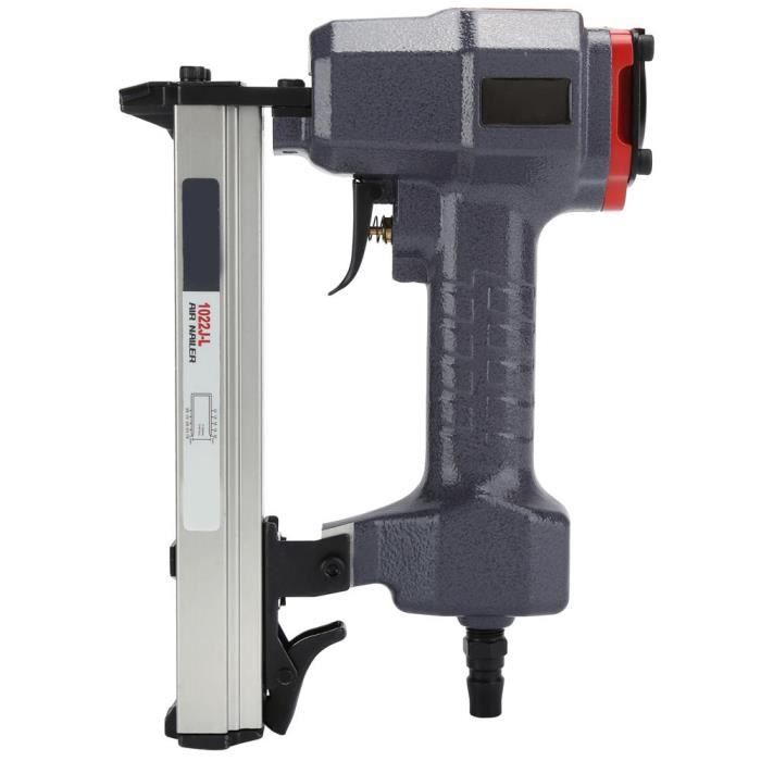Les gros cloueurs pneumatiques, c'est encombrant et bruyant... Cette mini cloueuse manuelle, elle, est parfaite pour les petits travaux de fixation. Elle fonctionne à l'air comprimé (il faut donc un compresseur), mais elle est vraiment compacte et se manipule à une main. En métal, couleur noir et orange, elle est robuste. Elle fait peu de bruit comparé aux gros modèles, donc vous ne dérangez pas tout le voisinage. Elle est polyvalente : vous pouvez l'utiliser pour fixer des boîtiers électriques, des tuyaux, des charnières, des petites pièces en bois ou en métal. Même pour monter des lampes solaires ou faire de la petite menuiserie. Attention, c'est un outil puissant, il faut l'utiliser avec précaution, ne pas le pointer vers des personnes et le ranger hors de portée des enfants. Pas besoin d'huile d'entretien. Livrée seule, prête à connecter à votre circuit d'air. Parfait pour les bricoleurs réguliers ou les pros qui ont besoin d'un outil précis et maniable.