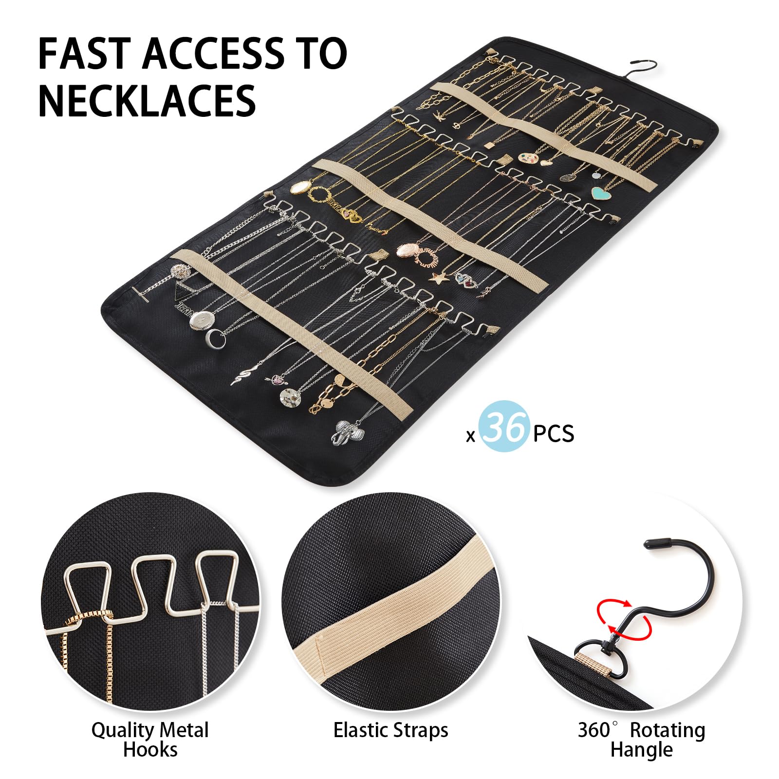 Organisateur Bijoux Suspendu Double Face – Poches PVC Transparent – Pour Boucles, Colliers, Bagues – Gain De Place, Noir