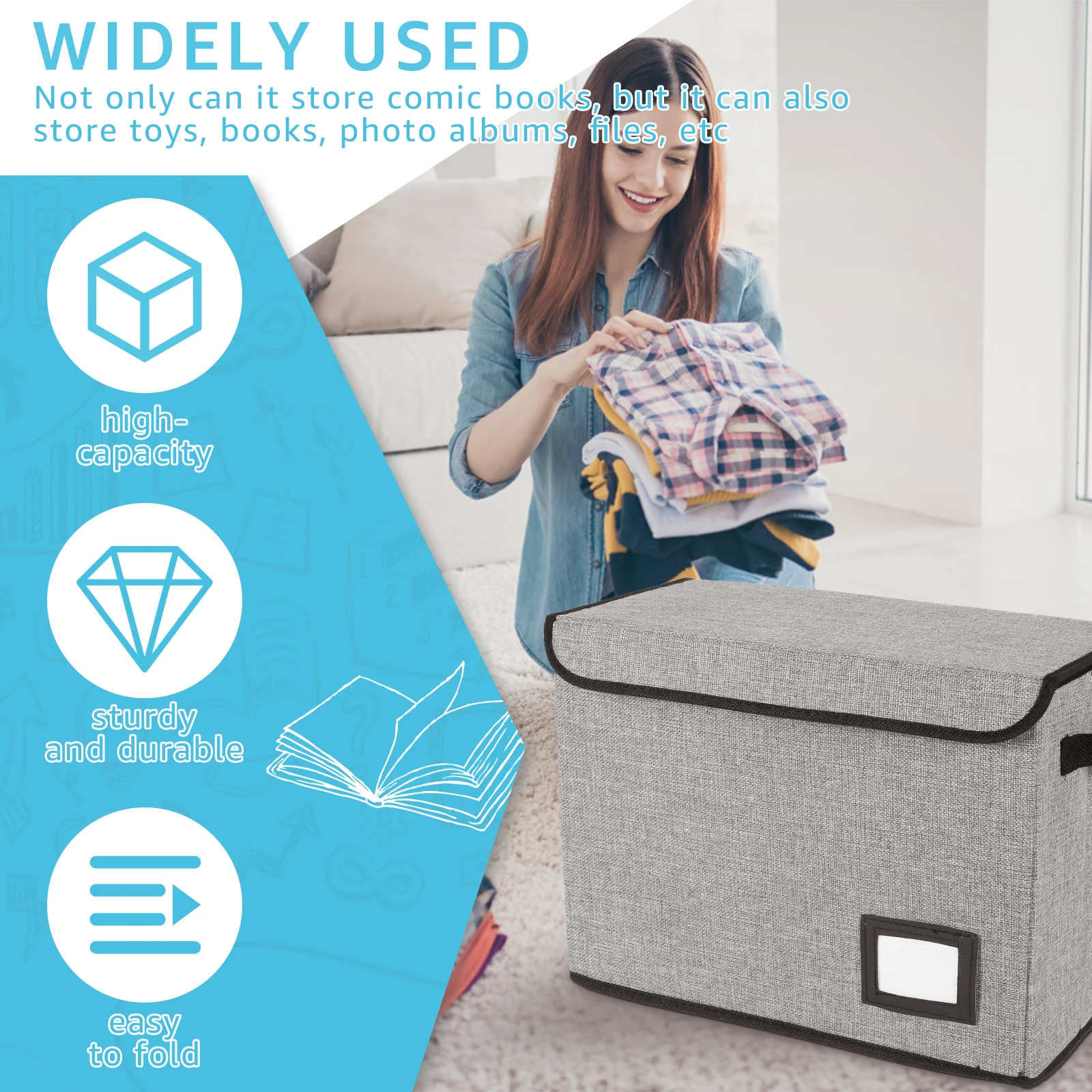 Organisateur BD Avec Couvercle Boîte De Rangement Pliable Pour Bandes Dessinées Ou Jouets - 40x20x30 Cm, Tissu Oxford Lavable, Avec Poignée Et Couvercle - Noir Boîte Rangement BD