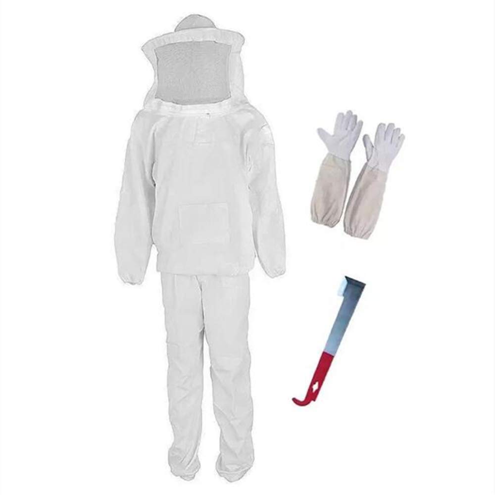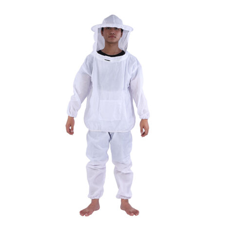 Pour travailler sereinement avec tes abeilles, cette combinaison de protection est essentielle ! C'est une veste intégrale avec un voile chapeau rond en filet noir solide, qui offre une excellente visibilité tout en éloignant les abeilles de ton visage. La taille est élastiquée pour un ajustement confortable, et les manches ont des passants pour les serrer sur tes gants. En coton blanc léger, elle permet une bonne liberté de mouvement et reste fraîche. Parfaite pour l'inspection des ruches, la récolte de miel, ou toute manipulation apicole. Un équipement de base, fiable et bien conçu, pour les apiculteurs amateurs comme les plus expérimentés qui veulent éviter les piqûres indésirables.