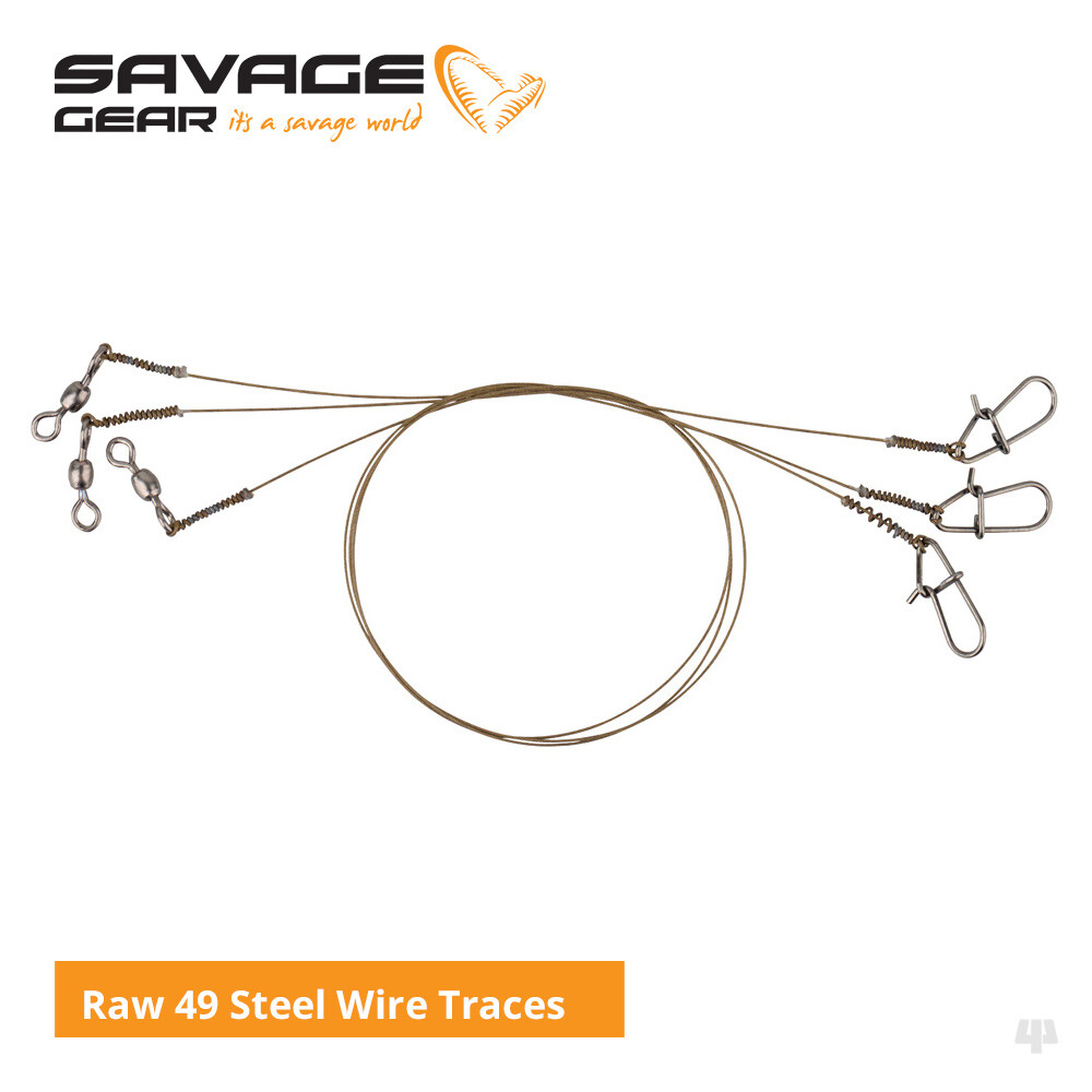 Câble Tressé SavageGear RAW 49 Acier Inox - Pour Brochet, Sandre, Maskinongé - 10m, 3 Résistances Au Choix
