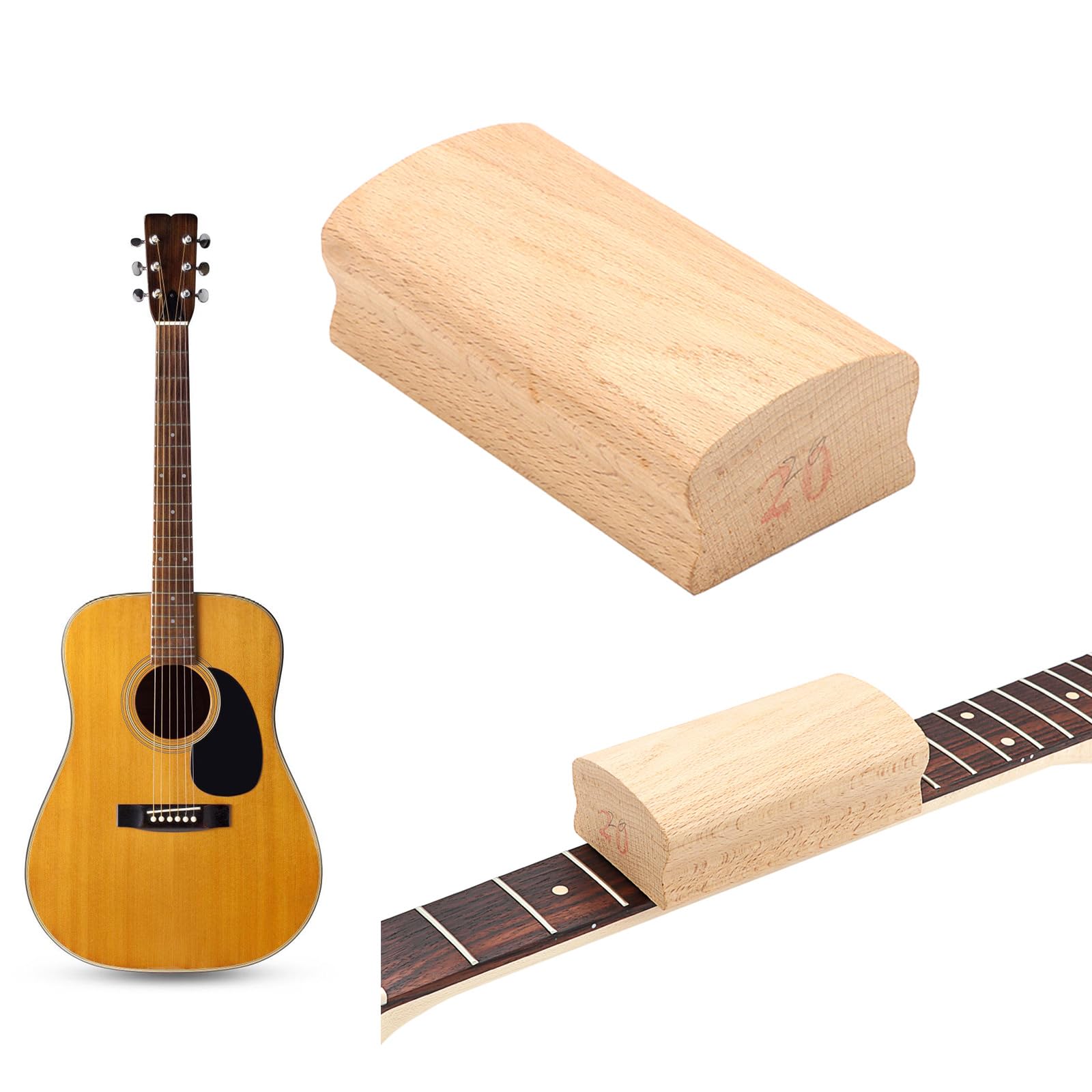 Il est en hêtre, un bois dur et stable, et il est préformé avec différents rayons (de 24,1 cm à 50,8 cm, soit environ 9,5 à 20 pouces). Tu choisis le bloc qui correspond au radius de ta touche, ou tu changes de bloc en progressant le long du manche si celui-ci a un radius composé.