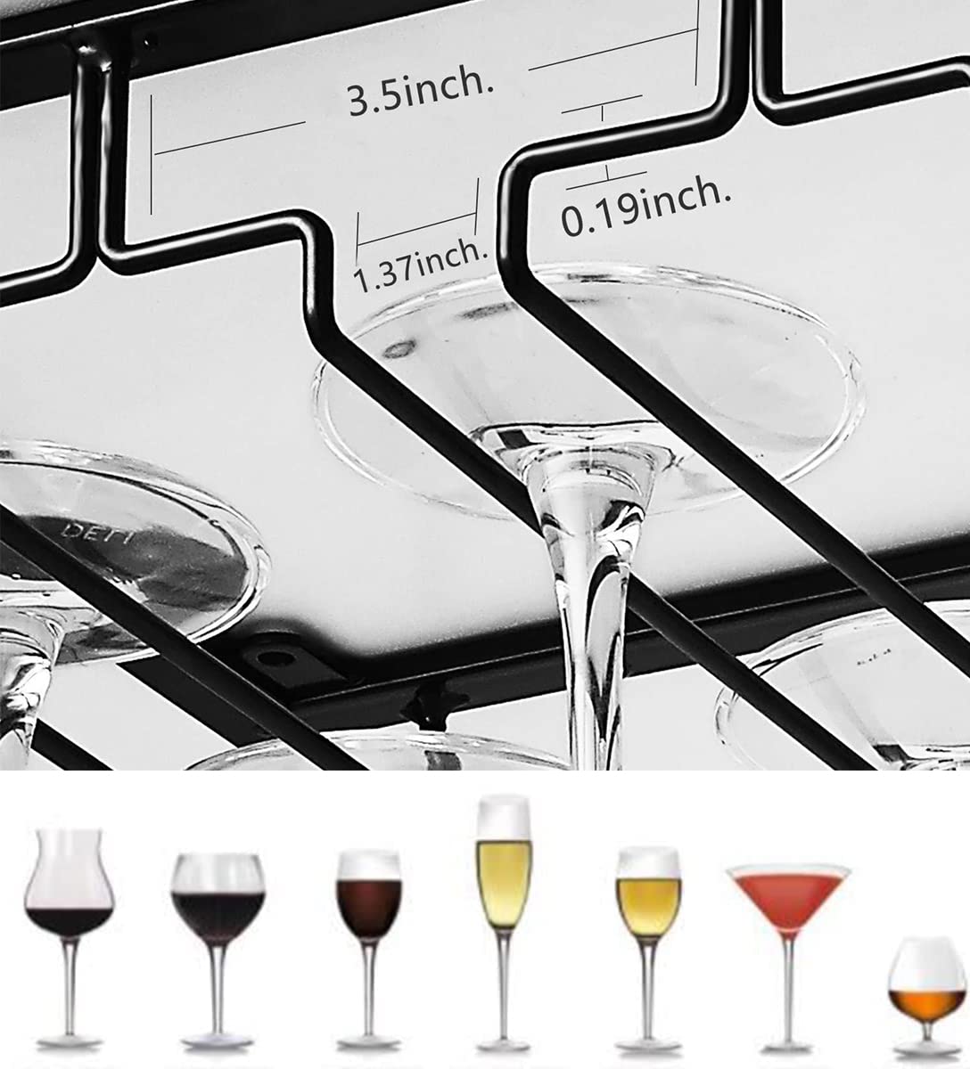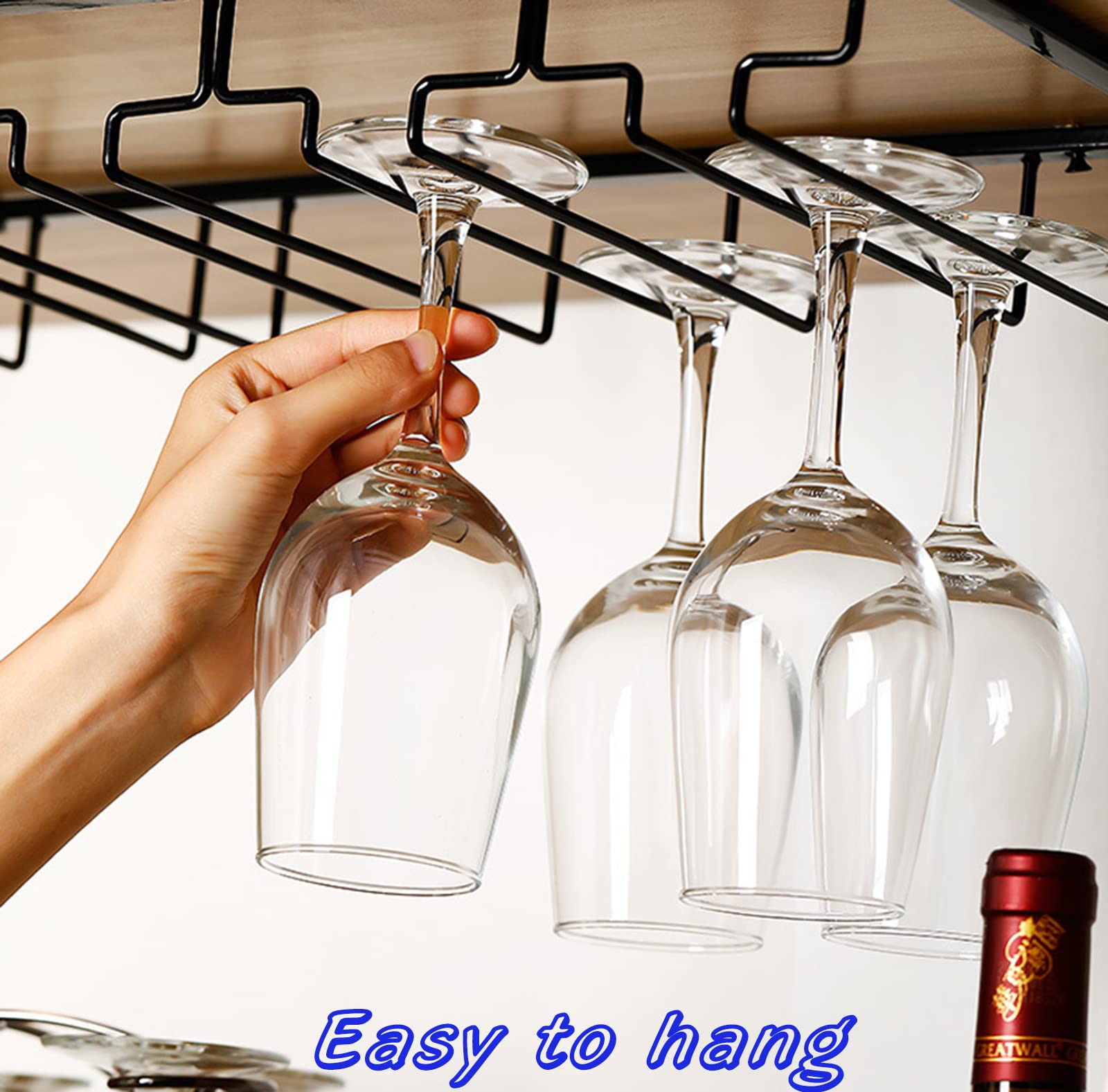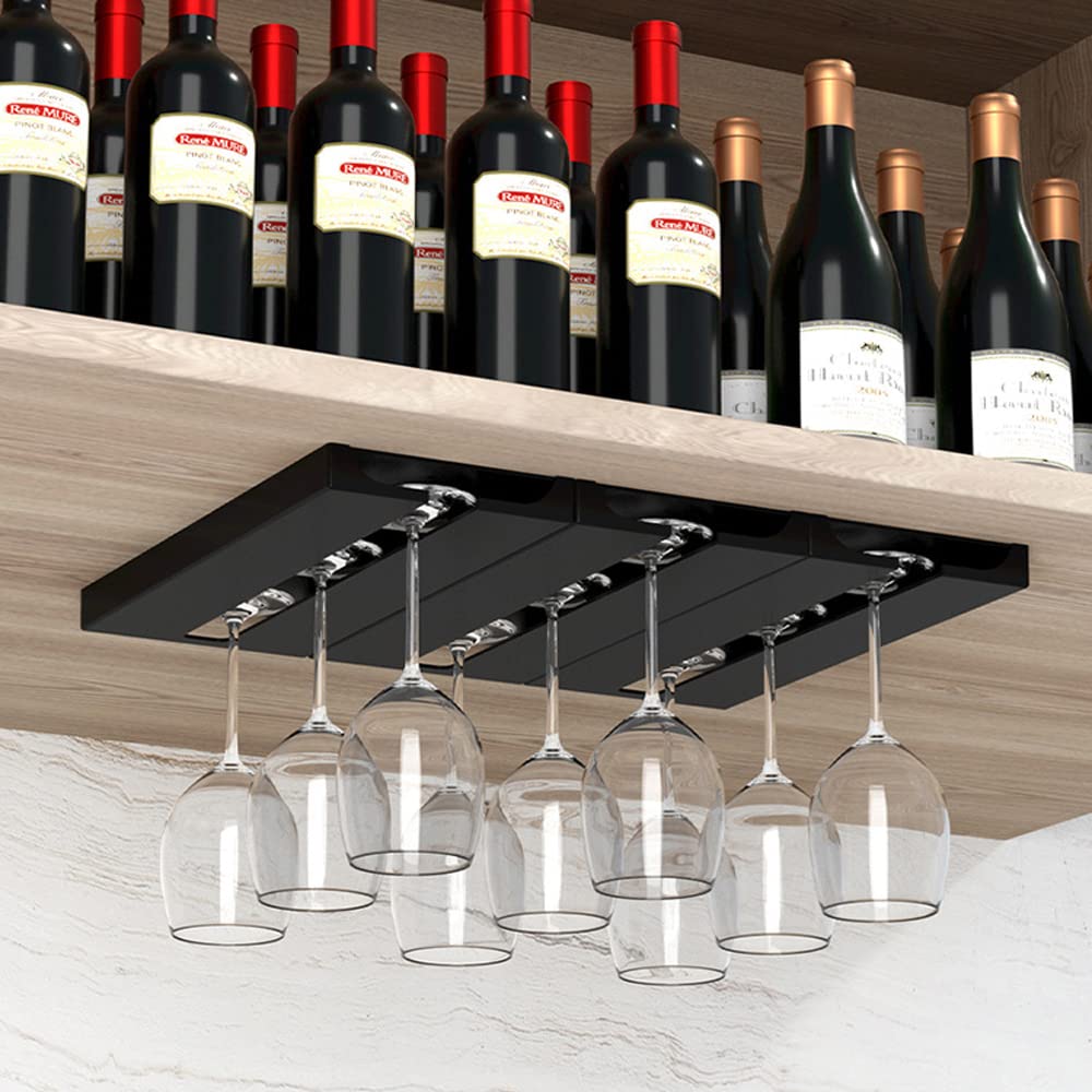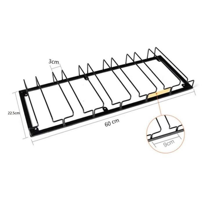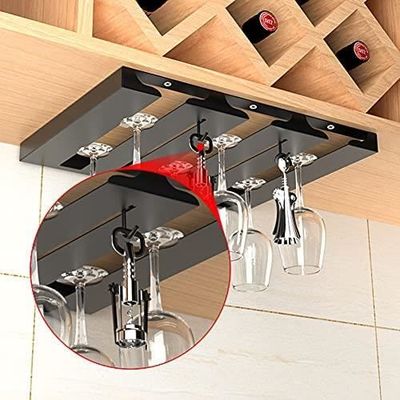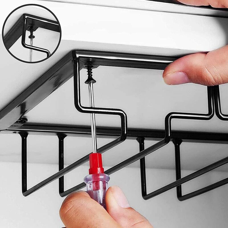 Vous manquez de place pour ranger vos verres à vin ? Ces deux supports suspendus se fixent facilement sous une armoire de cuisine, un plan de bar ou une étagère. Chaque support a 4 rails et peut accueillir 4 à 6 verres (soit 8 à 12 verres au total pour les deux). Ils acceptent les verres à pied avec un diamètre de base entre 4 et 9 cm (Bourgogne, Champagne, cocktail...). En fer robuste et anti-rouille, ils sont solides et durables. L'installation est simple avec des vis et un tournevis. En plus de gagner de l'espace dans vos placards, cela donne un look élégant et pratique à votre cuisine ou votre bar. Les verres sont ainsi à portée de main, bien visibles et sécurisés. Un accessoire malin pour les amateurs de vin et les accros de l'organisation.