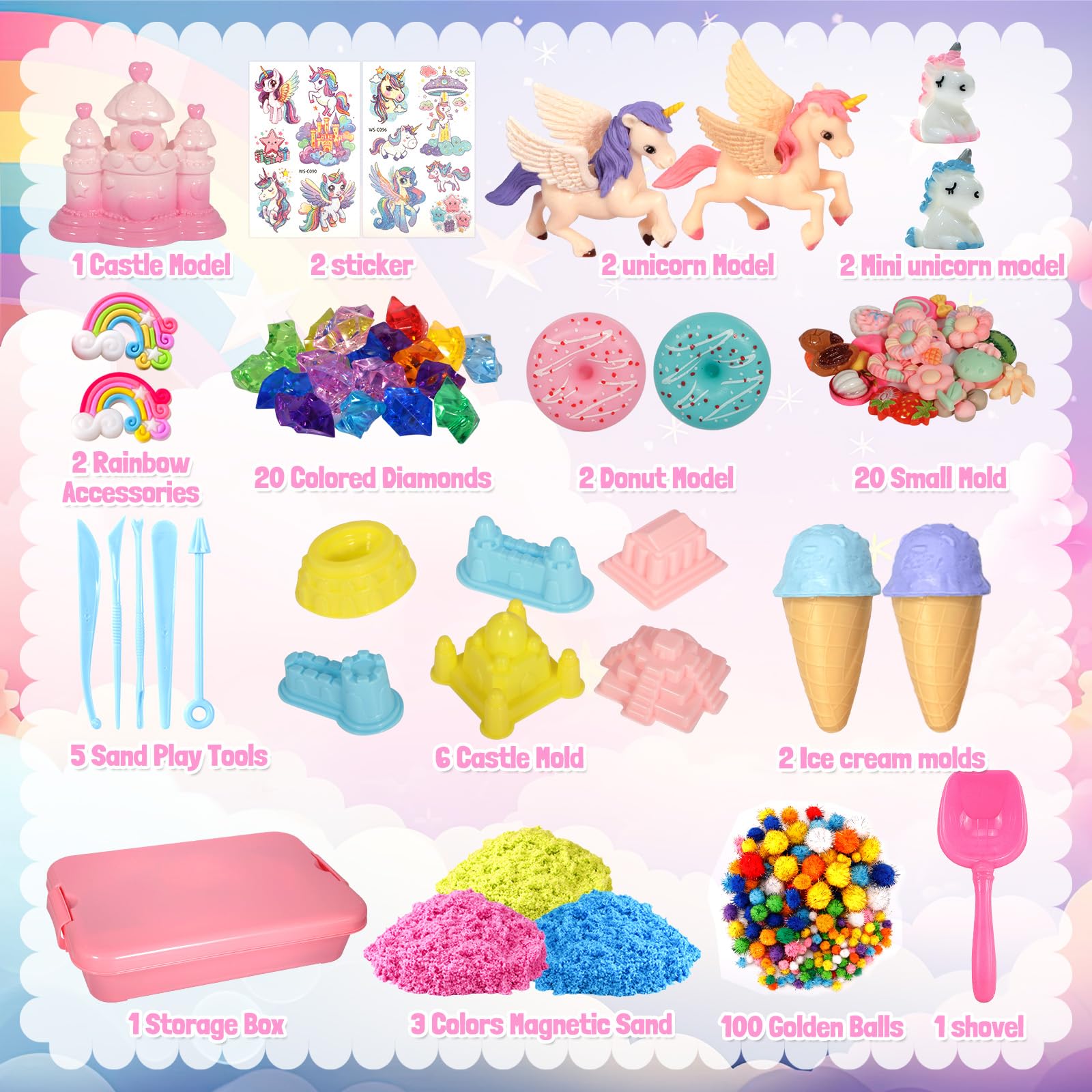 Kit De Sable Magique Licorne Pour Filles - Bac à Sable Sensoriel Avec Moules, Accessoires, Cadeau 3+ Ans (rose)