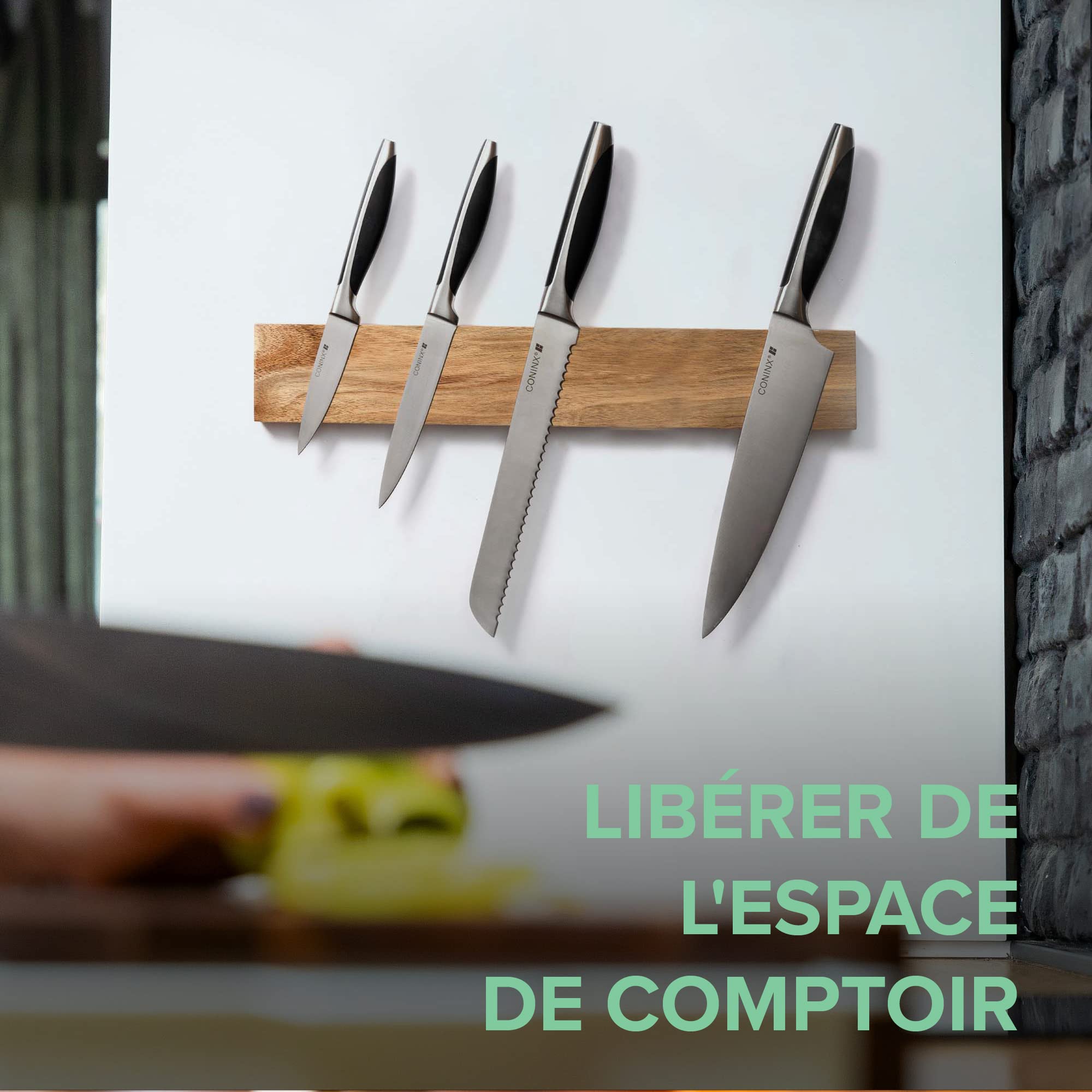 Libérez de l'espace dans vos tiroirs et donnez un côté ultra-design à votre cuisine ou votre atelier avec cette barre magnétique SiliSlick ! Équipée de deux aimants puissants, elle peut supporter jusqu'à 7.5 kg, de quoi accrocher tous vos couteaux, ciseaux, tournevis ou autres outils métalliques en toute sécurité. Plus besoin de fouiller dans un bloc à couteaux encombrant : ici, chaque lame est visible, accessible en un instant et maintenue fermement. Son installation est simple sur n'importe quel mur ou à l'intérieur d'une porte de placard (le matériel est fourni). En acier et au design épuré, elle s'intègre dans les intérieurs modernes. En plus d'être pratique, cette méthode de rangement protège le tranchant de vos couteaux (pas de contact avec d'autres objets) et vous évite de vous couper en cherchant dans un tiroir. Idéale aussi pour ranger les clés à l'entrée ou les ustensiles dans un atelier de bricolage. Une solution ingénieuse pour s'organiser avec style !