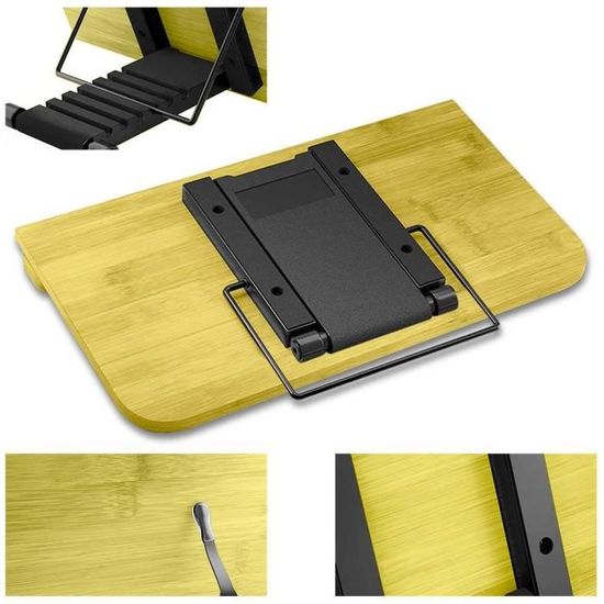 Support Livre Support De Livre Pliable Réglable En Bois - Avec 2 Clips, Pour Livres De Cuisine, Tablettes Ou Partitions Pupitre Tablette