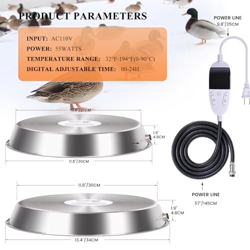 Résistance Chauffante 55W Pour Poulailler Chauffe-abreuvoir Pour Volaille, Plaque Chauffante Acier Inox Ø30/34 Cm | 55W, Réglable 0-90°C | Protection Contre Le Gel Hiver Chauffe-abreuvoir Volaille