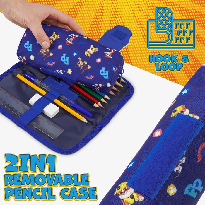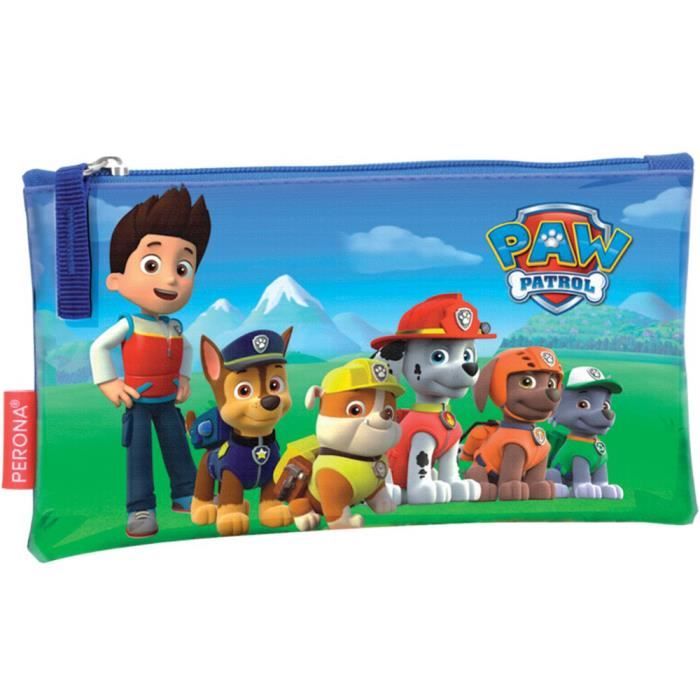 Une trousse scolaire Paw Patrol (La Pat’ Patrouille) qui va faire craquer les fans ! Elle a trois compartiments zippés pour bien organiser les affaires, et elle est déjà garnie avec des fournitures utiles : des crayons de couleur, des feutres, un stylo, et une règle. Tout est aux couleurs des personnages préférés (Chase, Marshall, Skye…).\n\nLa trousse est en polyester résistant, avec des fermetures éclair solides. Parfaite pour l’école, les voyages, ou les activités à la maison. Les enfants adorent avoir leur propre trousse décorée, et les parents apprécient le côté pratique (tout est inclus, pas besoin d’acheter séparément).\n\nC’est une licence officielle Nickelodeon, donc qualité graphique garantie. Existe en plusieurs modèles (double ou triple zip). Idéale en cadeau pour la rentrée, un anniversaire, ou pour motiver un enfant à faire ses devoirs. Une trousse fun, colorée, et utile – que demander de plus ?