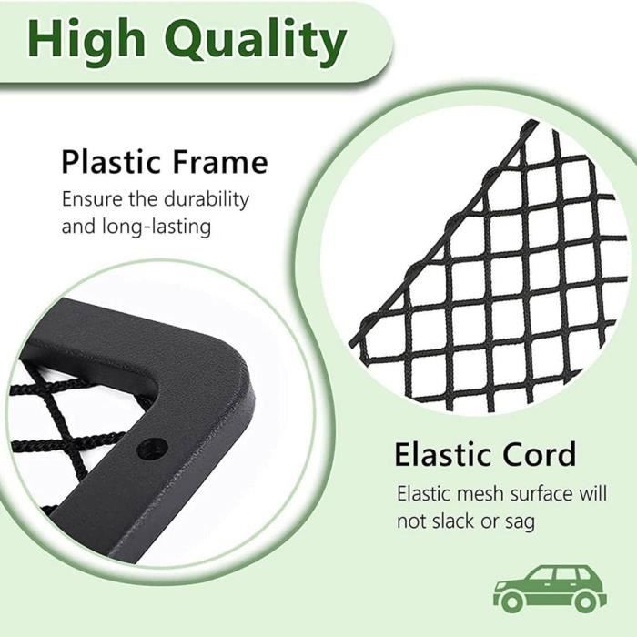 Votre coffre ressemble à un champ de bataille ? Ces 4 filets de rangement vont tout changer ! Dimensions : 60 x 25 cm chacun, en polyester et nylon ultra élastique et résistant. La double couche permet de ranger deux fois plus d'affaires sans tout mélanger. Ils s'installent en deux secondes avec les crochets et vis fournis. Parfaits pour maintenir en place les bouteilles, les sacs, les jouets des enfants, les outils, ou même le ballon de foot. Plus de trucs qui roulent dans tous les sens à chaque freinage ! Utilisables aussi bien en voiture, en camping-car, en caravane, en bateau, ou même dans un camion. Gain de place assuré et rangement optimisé. Les crochets tiennent bien, même sur les routes cabossées. Un petit investissement pour un coffre toujours propre et organisé. Fini la galère de chercher ses clés sous les courses ! Pratique, solide, et tellement utile au quotidien.