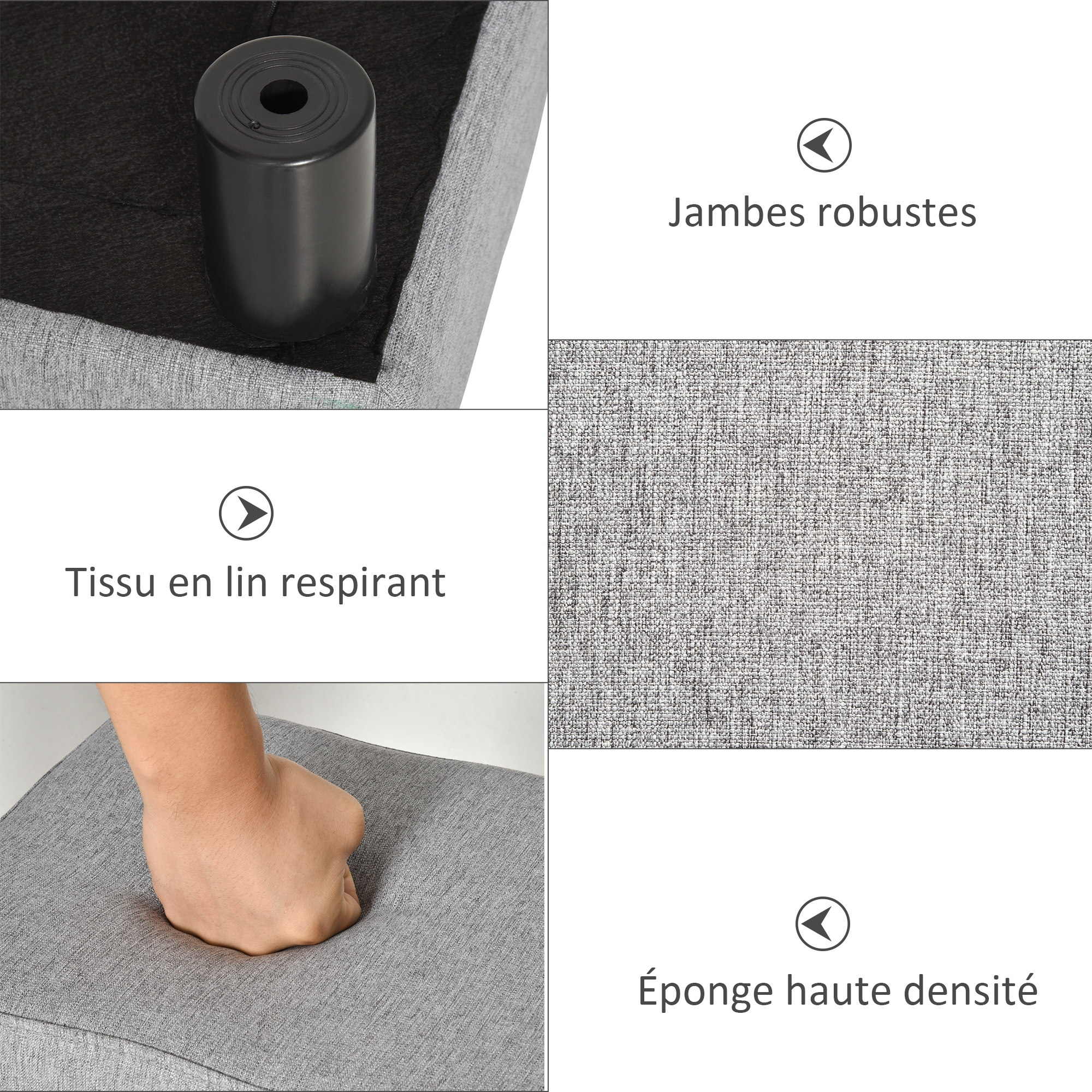 Pouf Repose-pied HOMCOM En Tissu De Lin Gris - Compact, Confortable, Charge 110 Kg - Idéal Salon Ou Studio